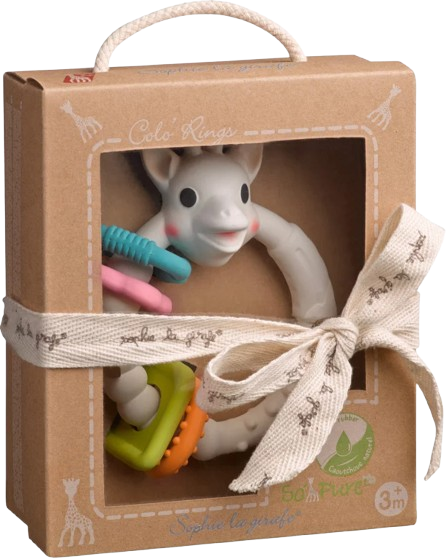 Made from natural Hevea rubber and decorated with food‑grade paint. Goometric shapes are safe and fun for your little one to chew.