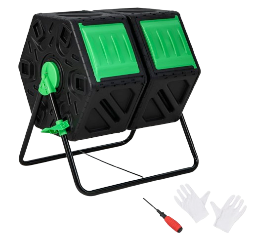 Single/Dual Chamber 360° Rotating Garden Compost Bin with Sliding Doors, Aeration System, Lockable Stopper