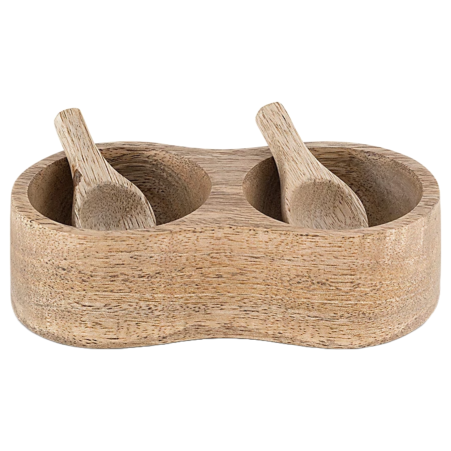Nkuku Mango wood salt & pepper server, a beautifully carved piece that brings natural charm to everyday dining.